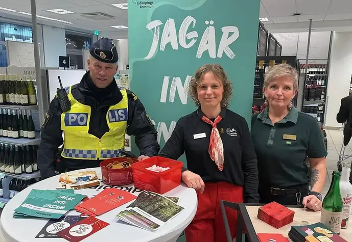 Den 5 december genomförde vi tillsammans med Polisen och Systembolaget en informationsinsats med budskapet Trygg jul för alla barn. Syftet var att uppmärksamma hur vuxnas alkoholkonsumtion kan påverka barns trygghet – och informera om vilket stöd som finns för barn och familjer i Lidköping.